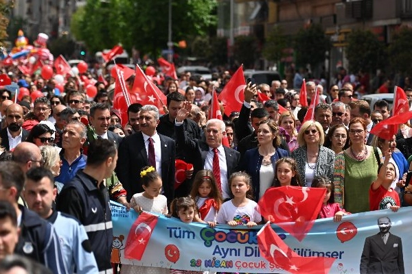 23 Nisan coşkusu, yüzlerce çocuk ve ailelerinin katılımıyla Altıparmak Caddesi’nden Merinos Parkı’na doğru yapılan kortej yürüyüşüyle başladı. Ellerindeki Türk bayraklarıyla marşlar söyleyerek ve şiirler okuyarak yürüyen çocuklara, Büyükşehir Belediye Başkanı Mustafa Bozbey ve eşi Seden Bozbey, CHP İl Başkanı Nihat Yeşiltaş ve Bursa Milletvekili Orhan Sarıbal da eşlik etti.