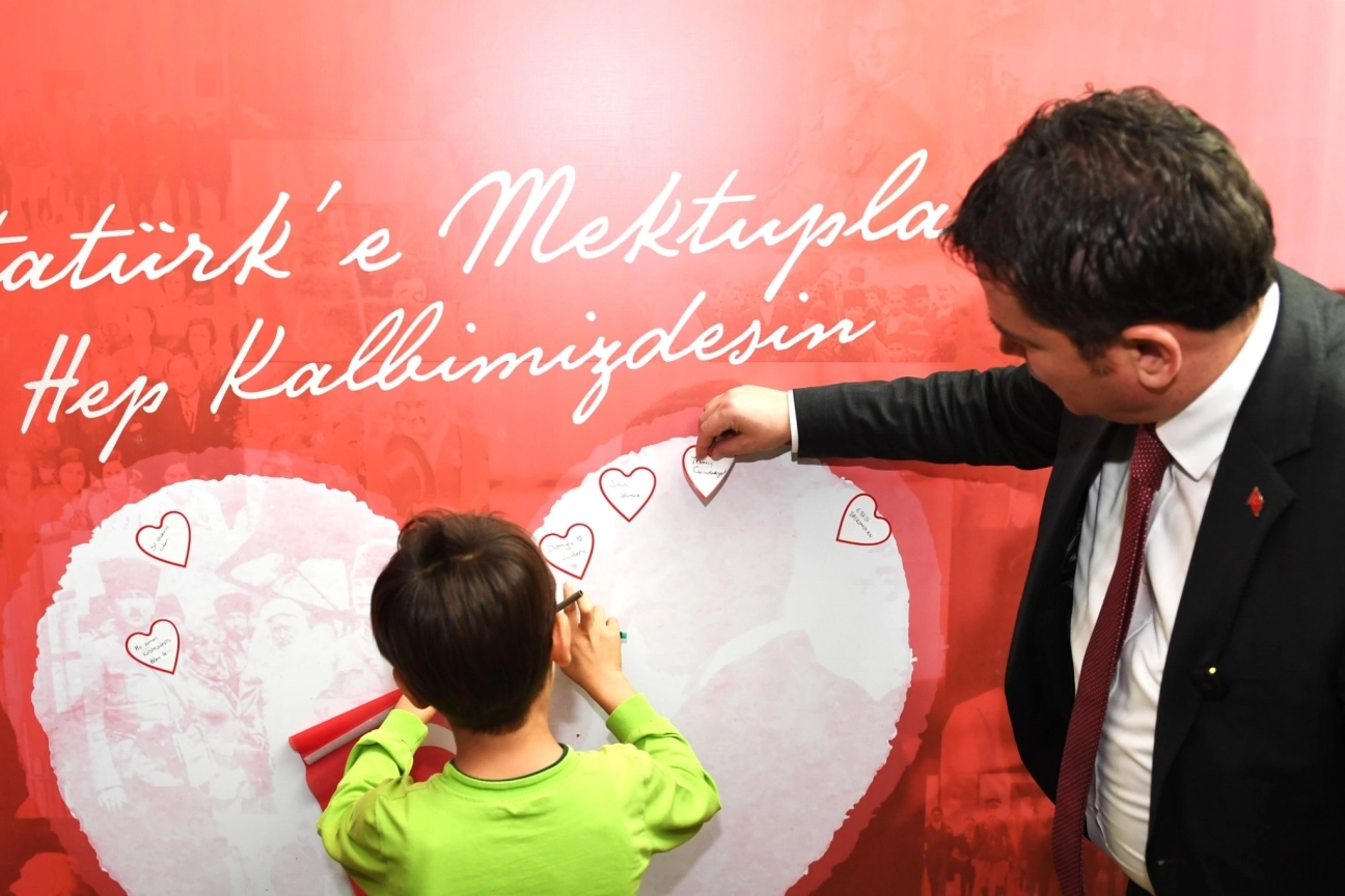 BURSA (İGFA) - Büyük Önder Mustafa Kemal Atatürk’e sevgi ve bağlılığıyla bilinen Osmangazi Belediye Başkanı Erkan Aydın, hayata geçirdiği Atatürk Defteri projesiyle bunu bir kez daha gözler önüne serdi. Osmangazi Belediyesi’nin kütüphanelerine gelerek ders çalışan çocuklar kütüphaneye geldiklerinde Atatürk’e olan duygu ve düşüncelerini içeren mektuplar yazarak kütüphanelere teslim etti. Atatürk’e yazılan mektuplar 25 adete ulaşınca Başkan Erkan Aydın, bu mektupların bir kitapta toplanmasını istedi. Oluşturulan Atatürk Defterine çocukların yazdığı mektuplar tek tek aktarıldı. Atatürk Defteri düzenlenen törenle Osmangazi Belediyesi’nin girişine konuldu. Osmangazi Belediyesi’ne gelen tüm misafirler Atatürk’e duygu ve düşüncelerini artık Atatürk Defterine yazabilecek.