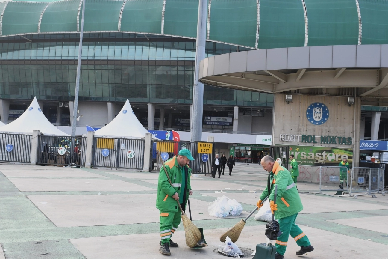 Osmangazi Belediyesi Temizlik İşleri Müdürlüğü ekipleri, bu hafta oynanan ve Bursaspor’un 2-0 kazandığı Ergene Velimeşespor karşılaşmasının ardından temizlik çalışması gerçekleştirdi.
