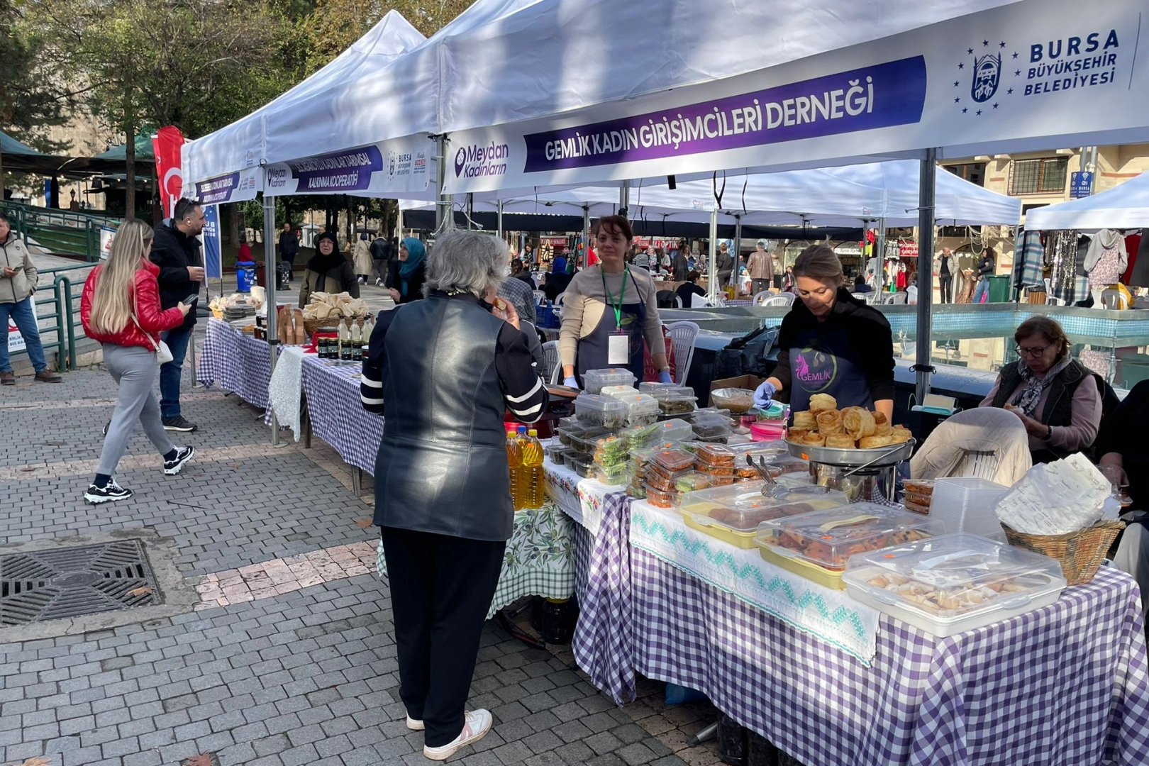 Bursa Büyükşehir Belediyesi’nin ‘Meydan Kadınların’ sloganıyla yürüttüğü dayanışma pazarı bir kez daha Heykel Orhangazi Parkı’nda kuruldu. Kadınların ürettiği el işi ürünler ile yöresel tatların sunulduğu etkinlik, hem renkli görüntüler oluşturdu hem de ziyaretçilerden yoğun ilgi gördü.