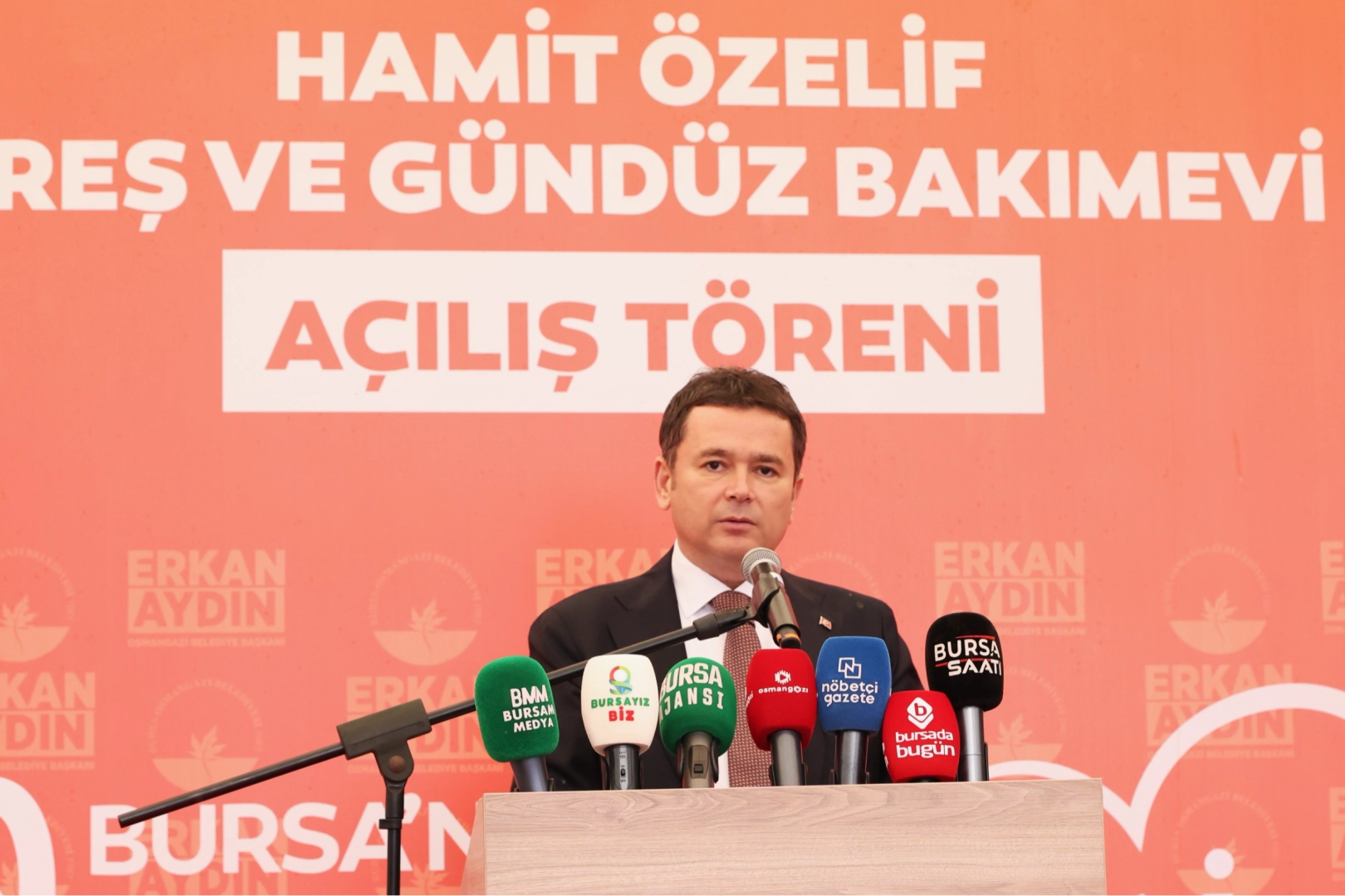 Osmangazi’ye bir kreş daha kazandırdıklarını ifade eden Osmangazi Belediye Başkanı Erkan Aydın, “Grup Başkan Vekilimiz Gökhan Günaydın, bütçe görüşmelerinde verdiği güzel mücadele ve direnişle halkın her kesiminden büyük destek gördü. İnşallah kısa zamanda iktidarımızda, hep birlikte ülkemize bu tür hizmetleri daha da fazla kazandıracağız. Hayırsever iş insanı Ali Özelif’e de özellikle teşekkür ediyorum. Sağ olsun, burayı önerdiğimizde hiç ikiletmedi. ‘Başkanım, bize yer gösterin; ne gerekiyorsa yapmaya hazırız’ dedi. Çok kısa sürede kreşimizin inşaatını tamamladı ve bugün açılışını yapıyoruz. Allah hayırlarını kabul etsin, nicelerini yapmak da nasip olsun. Bugün beşinci kreşimizi açtık. Göreve geldiğimizden bu yana yaklaşık iki yıl geçti. Dört kreşimizin daha çalışmaları başladı. Yaz döneminde bu kreşleri de tamamlayarak 2026–2027 eğitim öğretim dönemine toplam 10 kreşle girmeyi hedefliyoruz. Bunun yanında pazar yeri temelini attık. Hisar bölgesindeki 3 bin yıllık arkeopark projesi yüzde 99 seviyelerine ulaştı. Orada bir Yaşar Kemal Medeniyetler Kütüphanesi açacağız. Romangal Fabrikası’ndaki çalışmalar da hızla ilerliyor. Diğer projelerimizde de yoğun bir şekilde çalışmalarımız sürüyor. Bizim tek bir derdimiz var: Genel Başkanımızın bin kreş hedefine Osmangazi’de, dönem bitene kadar 20 kreşle katkıda bulunmak. Ayrıca yaklaşan erken genel seçimde, yerelde yaptığımız hizmetlerle Cumhuriyet Halk Partisi iktidarına katkı sunmak istiyoruz” şeklinde konuştu.