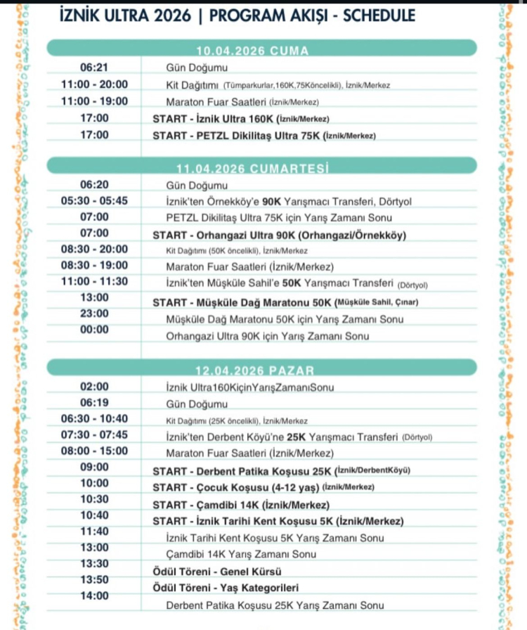 İznik Ultra 2026 maratonu 10-12 Nisan tarihlerinde gerçekleşecek.